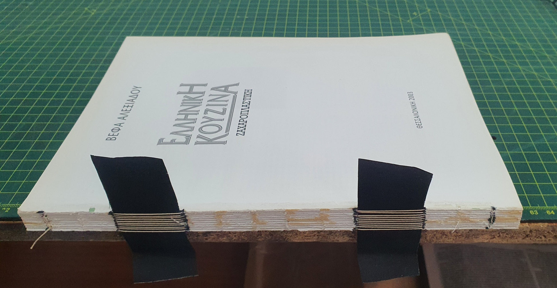 Διαδικασία επιδιόρθωσης βιβλίου...Δημιουργία εξωφύλλου , ράψιμο φύλλων και ολοκλήρωση με σκληρόδετο κάλυμμα.