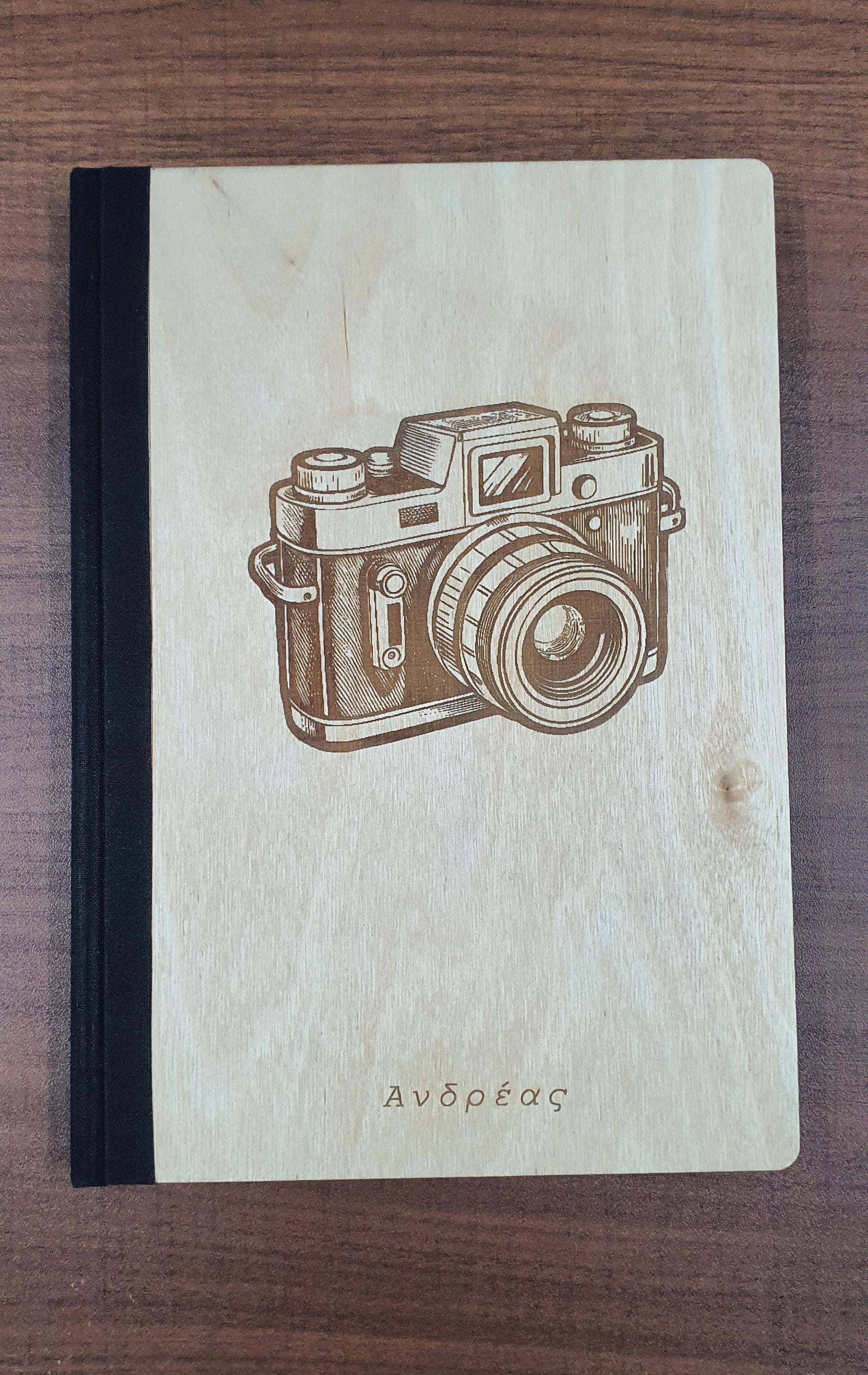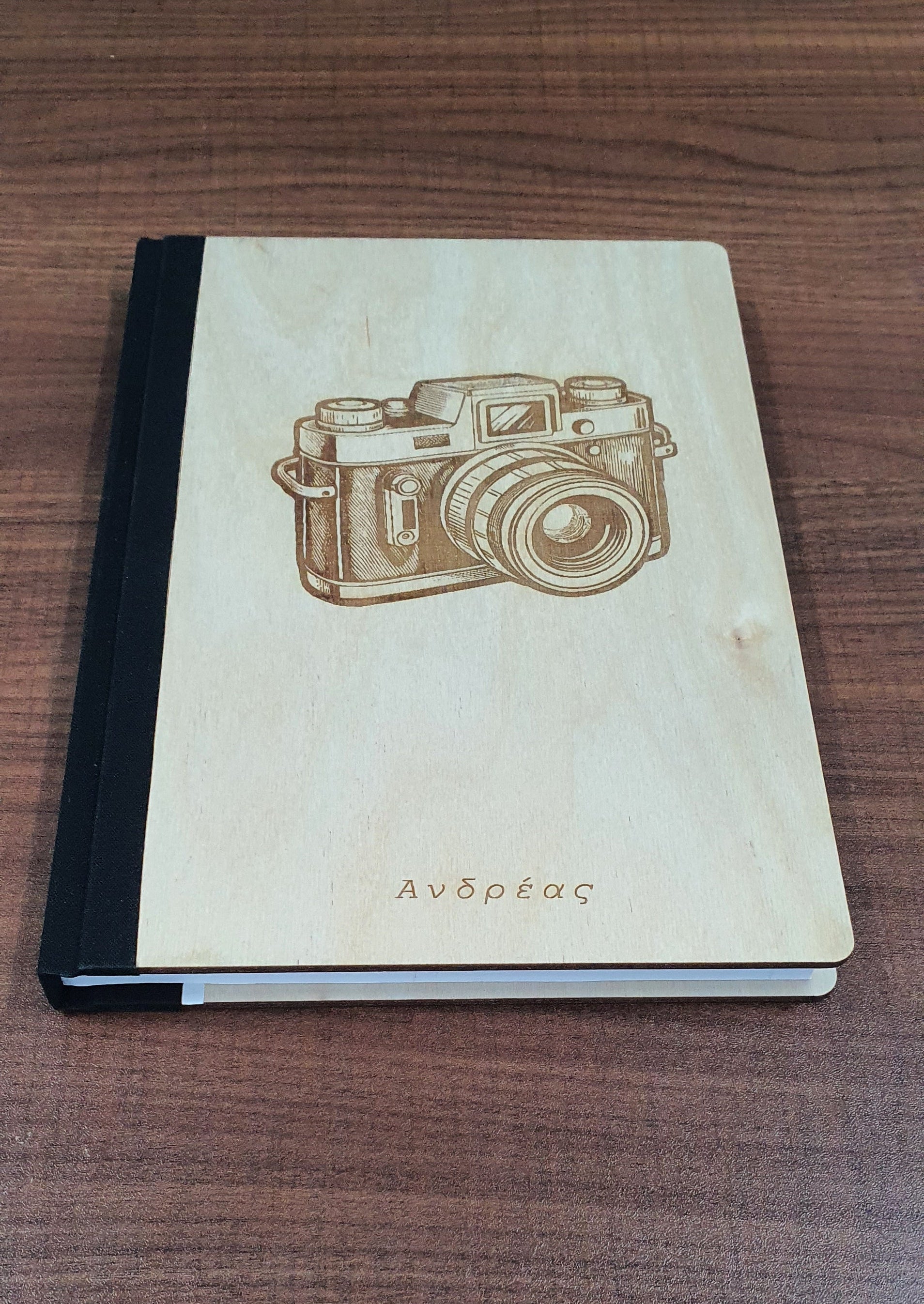 Ημερολόγιο με ξύλινο εξώφυλλο και χάραξη