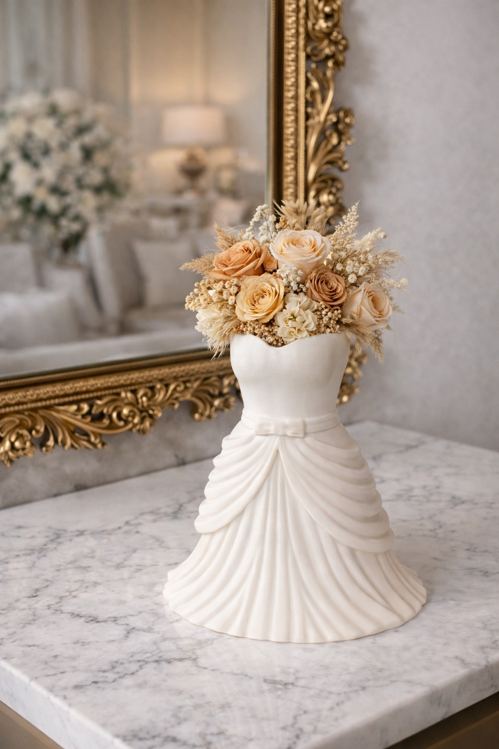 Κομψό διακοσμητικό βάζο σε σχήμα νυφικού φορέματος.Ιδανικό για γαμήλιο τραπέζι και διακόσμηση σπιτιού.